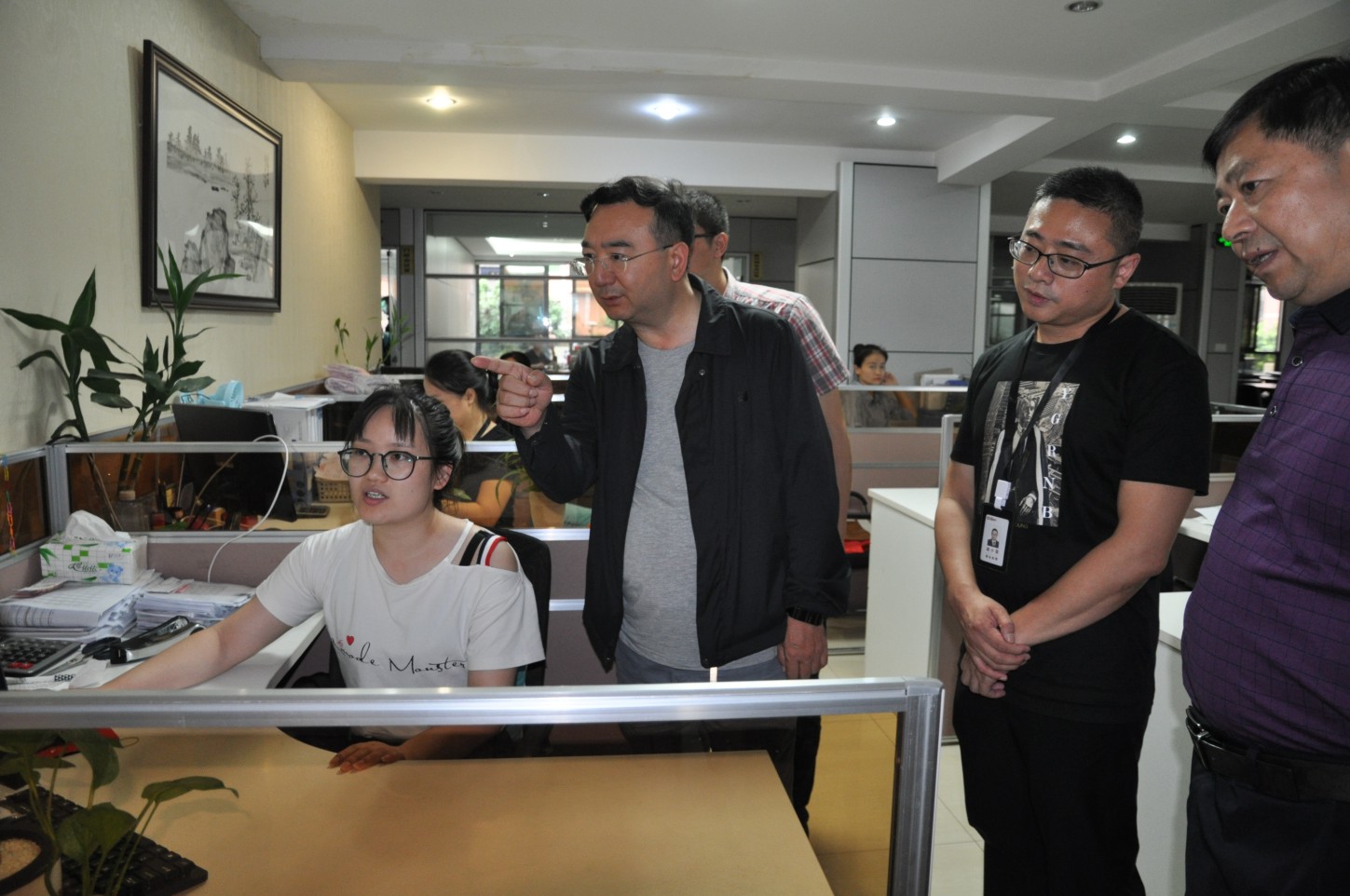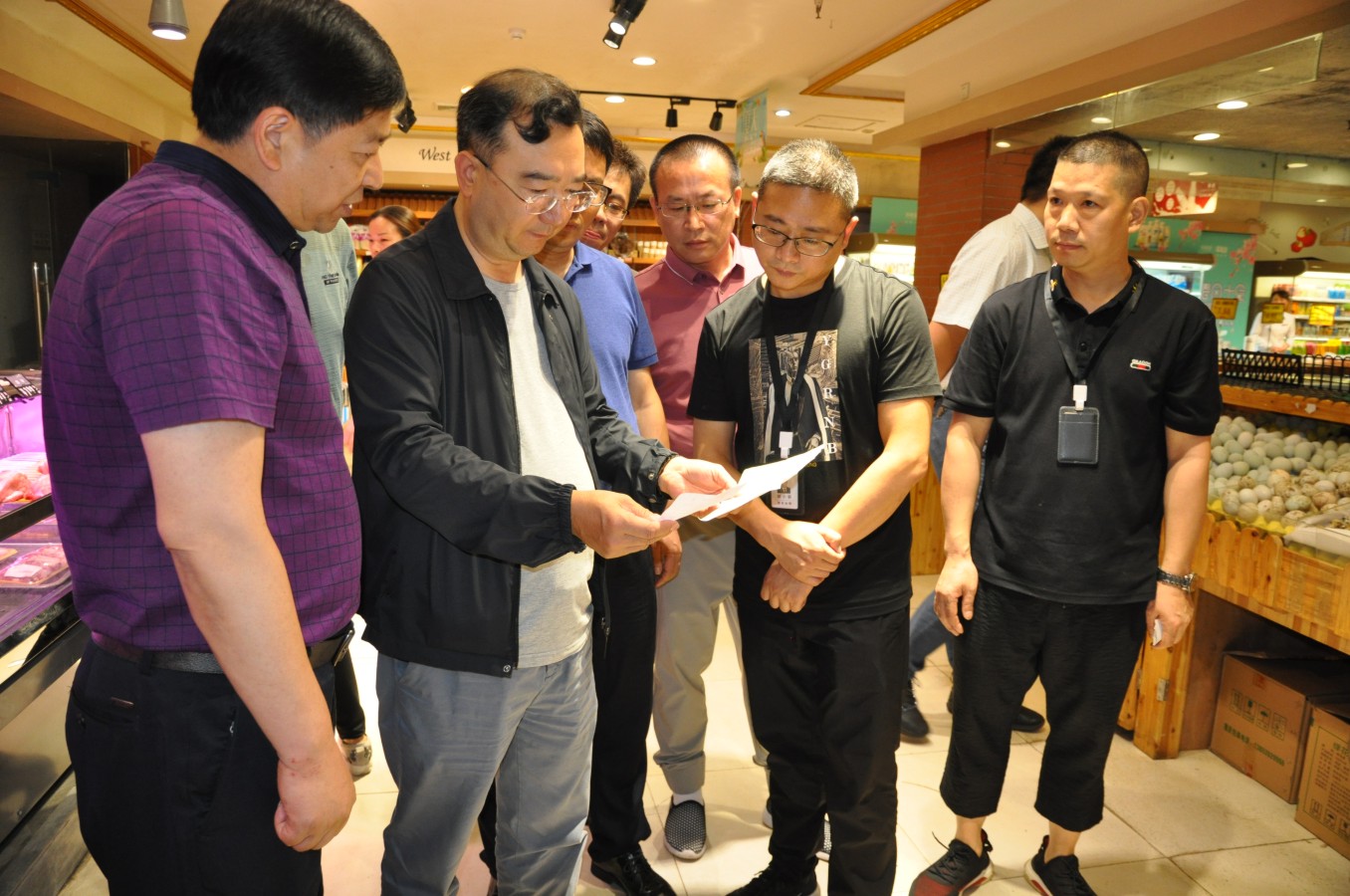 2019年(ni↔©λ≤án)5月(yuè)28日(rì)重慶市(shì)市(shì)場(chǎng)α€‍監督管理(lǐ)局副局長(cháng)楊光(¥∑αguāng)和(hé)縣市(shì)場(chǎng)監督管理(l '‍‌ǐ)局局長(cháng)任傑帶領相(xiàng)關人(rén)員(yuán)對(d≤∞uì)我公司總店(diàn)進行(xíng)了(le)食品安全檢查。公λ¶ε"司副總經理(lǐ)胡小(xiǎo)榮、行(xíng)政部經理(lǐ)徐松明(mí φ$&ng)、營運部經理(lǐ)萬朗等領導陪同。