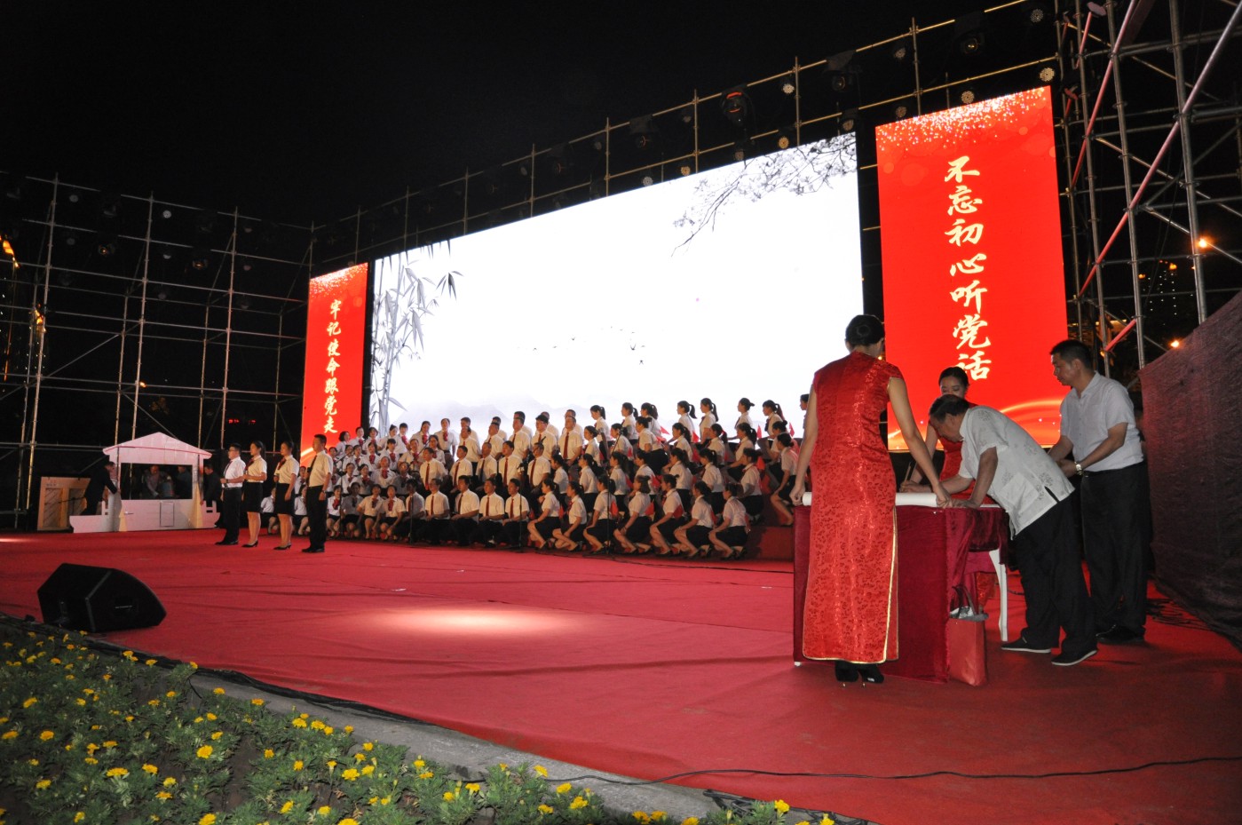 當晚胡燃商行(xíng)傾情演繹詩朗誦《歌(gē)頌祖國(Ωπ←guó)》,